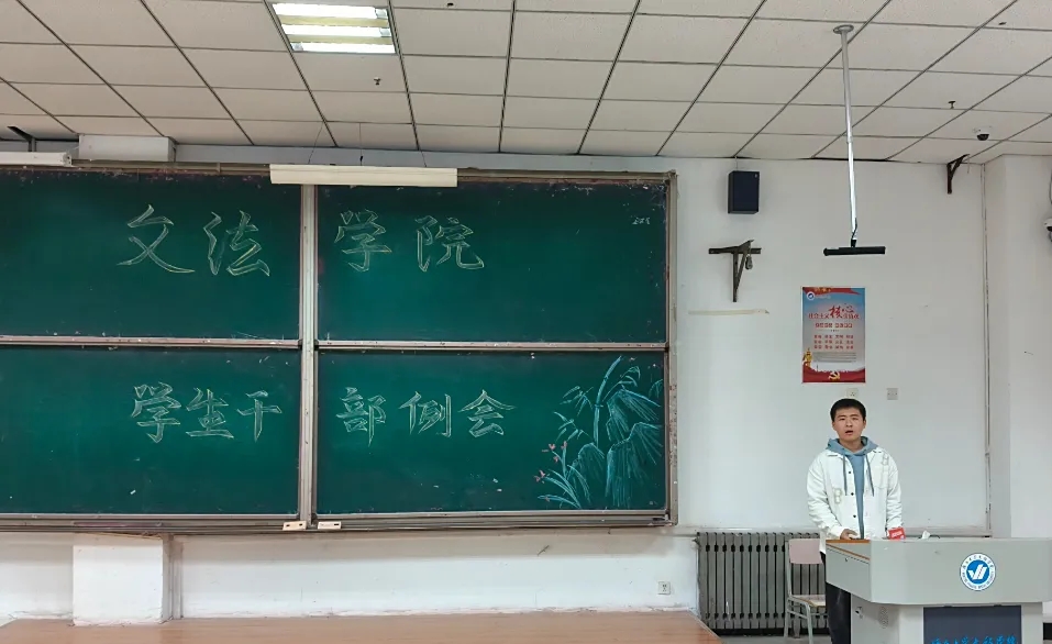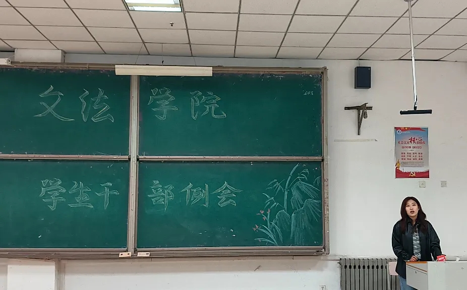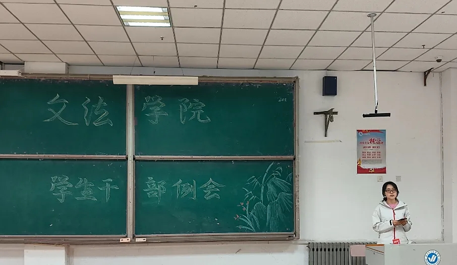 为总结前期工作经验,明确下一阶段任务,确保各项学生工作有序推进,10月16日,文法学院在二教115教室召开学生干部工作例会。会议由学院团总支副书记纪俞舟主持,党总支书记曹钊庆、辅导员老师以及主要学生干部参加。