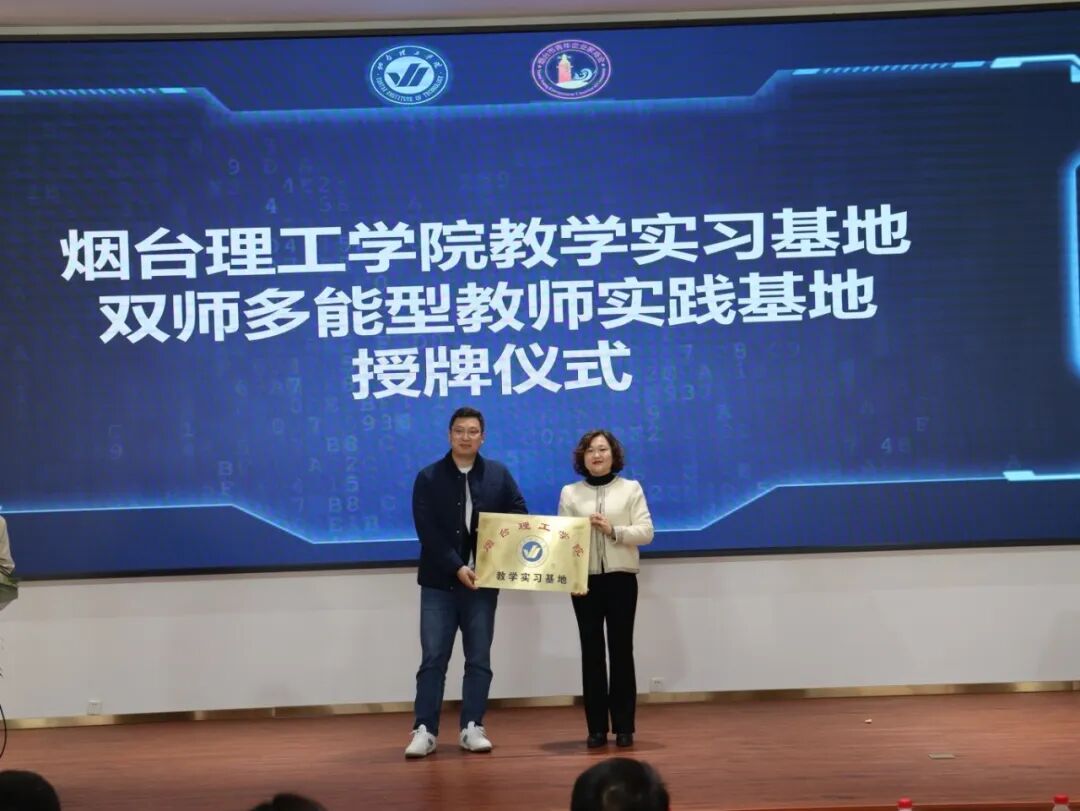 闭幕式上,山东广播电视台生活农科管理运营中心融媒采编部主任牟宗平和郭亚奇副院长共同为山东广播电视台生活频道授予“烟台理工学院教学实习基地”与“双师多能型教师实践基地”授牌,这既是双方合作成果的见证,更是未来共同培养传媒人才、探索产教融合新模式的起点。