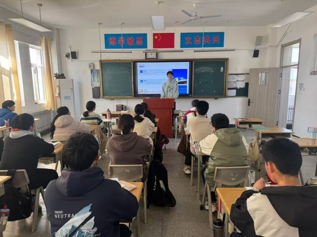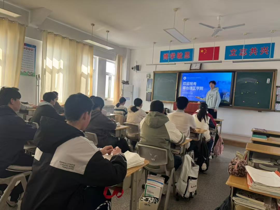 冬日的校园依旧宁静而充满生机,朗朗读书声勾起了对高中岁月的无限回忆。回到母校,赵宸首先拜访了高中时期的恩师,向老师们汇报了在大学期间的学习成果与生活感悟,并对母校的辛勤培育表达了由衷的感谢。宣讲现场,赵宸同学从烟台理工学院优美的校园环境、雄厚的师资力量、特色鲜明的专业设置、丰富多彩的校园文化、浓厚的学习氛围等方面展开生动讲解,仿佛为在场的高三学子打开了一扇通往未来的窗户,让大家对这所坐落于山海之间的高等学府有了直观而深入的了解。在台下的老师和同学们认真聆听,对烟台理工学院的学习氛围与培养成果给予高度认可。