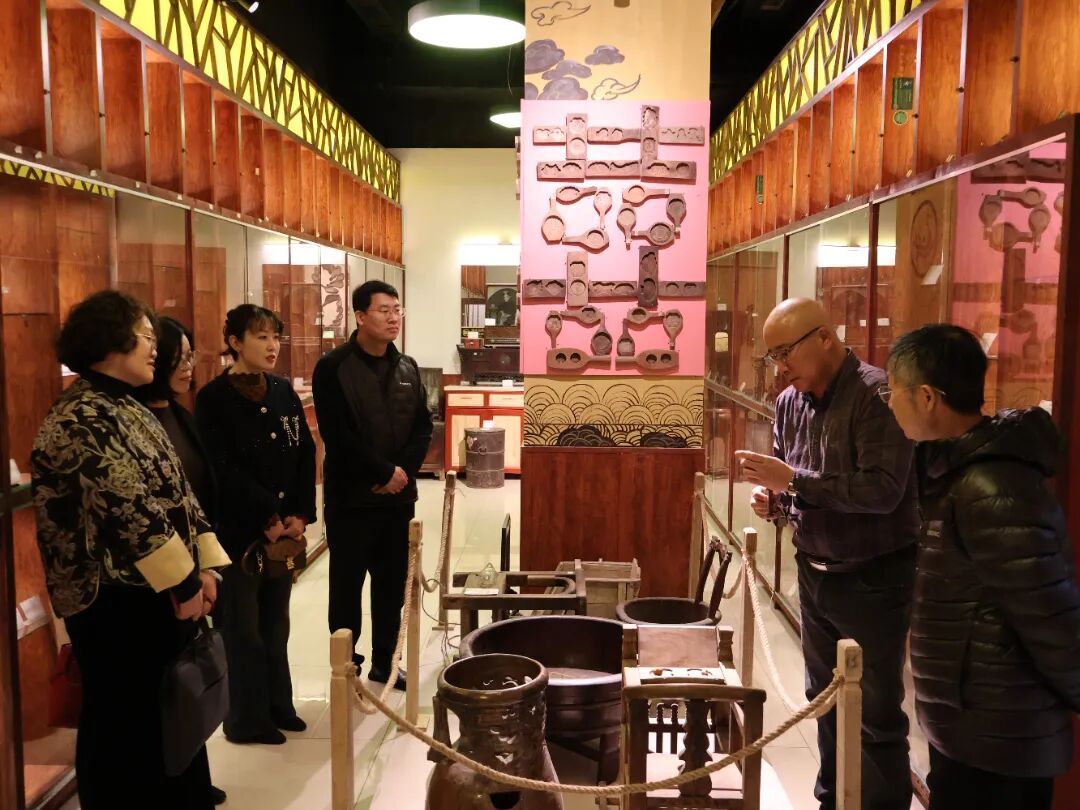 璜山书院是烟台有较大影响力的文化传播品牌,获“山东省年度最美书店”“烟台市首批新时代文明实践基地”等荣誉。书院依托3000平方米场地,打造集讲学、藏书、文化传承功能于一体的城市人文空间。2023年开馆的璜山民艺博物馆是芝罘区首家区属民营博物馆,馆藏14000多件(套)胶东民俗老物件,设九个特色展厅,以胶东风情为核心展现地域特色,其特色藏品是胶东文化研究的珍贵实物宝库。交流中,璜山书院院长邢纪波教授带领文法学院教师参观民艺博物馆,详细阐释馆藏文物历史底蕴与文化价值,让教师近距离感受胶东文化脉络,体悟非遗技艺传承。