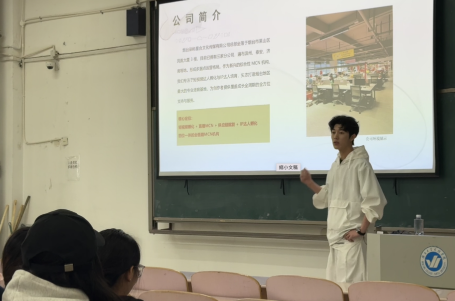为拓宽学生就业渠道,搭建校企交流平台,助力学生把握新媒体行业发展机遇,4月10日,烟台理工学院文法学院与烟台柒屿星合文化传媒有限公司举办校园活动,开展专场宣讲会。网络与新媒体、新闻学等相关专业学生踊跃参与,现场氛围热烈。