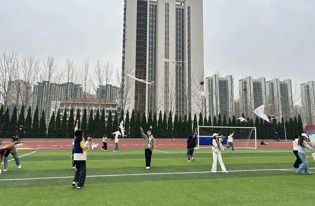 同学们在操场有序集合后,老师统一发放空白风筝。大家执起彩笔,将春日光景与心中期许细细描摹,一笔一画间,同学巧妙融入传统纹样与简易书法,既有美学的温润滋养,也悄然浸润着传统文化的淡淡韵味。风筝绘制完毕,师生们一同迎着春风放飞,奔跑放线间,筋骨舒展、体魄强健,连日来的学业疲惫随纸鸢升空,消散在澄澈晴空,心境也愈发轻快明朗。色彩斑斓的风筝点缀蓝天,师生间相互配合、彼此鼓劲,现场暖意融融、秩序井然,活动最后,全体师生合影留念,将这一温馨治愈的春日瞬间永久定格。