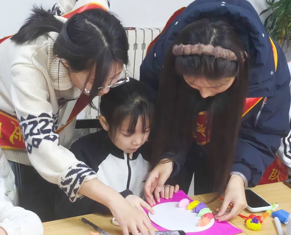 活动现场暖意融融,知识讲解环节,志愿者们借助精心制作的PPT课件,以童趣化的语言为孩子们讲解冬至的天文意义、南北方习俗差异,讲述张仲景“祛寒娇耳汤”的经典故事。通过插画与动画阐释“蚯蚓结”“麋角解”“水泉动”的冬至三候自然现象,《冬至九九歌》的朗诵互动更是唤起了孩子们的参与热情。手工创作环节成为活动亮点,志愿者们指导孩子们制作饺子黏土模型、节气创意画与冬至手札,孩子们提笔写下心愿,在亲子协作与动手实践中勾勒出对冬至的美好想象,现场洋溢着温馨欢乐的氛围。活动最后,孩子们手持作品登台分享创作思路,一张张稚嫩的笑脸与创意满满的作品,定格了此次冬至活动的温暖瞬间。