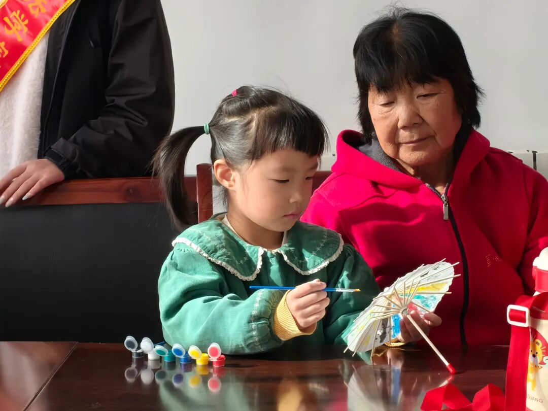活动现场,学子志愿者通过讲解与实物展示,系统介绍油纸伞的千年历史、制作工艺及“团圆美满”的民俗内涵,并分享传统纹样与现代元素融合的设计思路。绘画环节中,亲子共同执笔,或勾勒江南水乡的温婉景致,或绘制萌趣活泼的卡通图案,亦有作品融诗意于伞面,展现创意与情感的交流。我院志愿者们全程提供调色与构图指导,及时解答疑问,现场氛围融洽,互动频频。