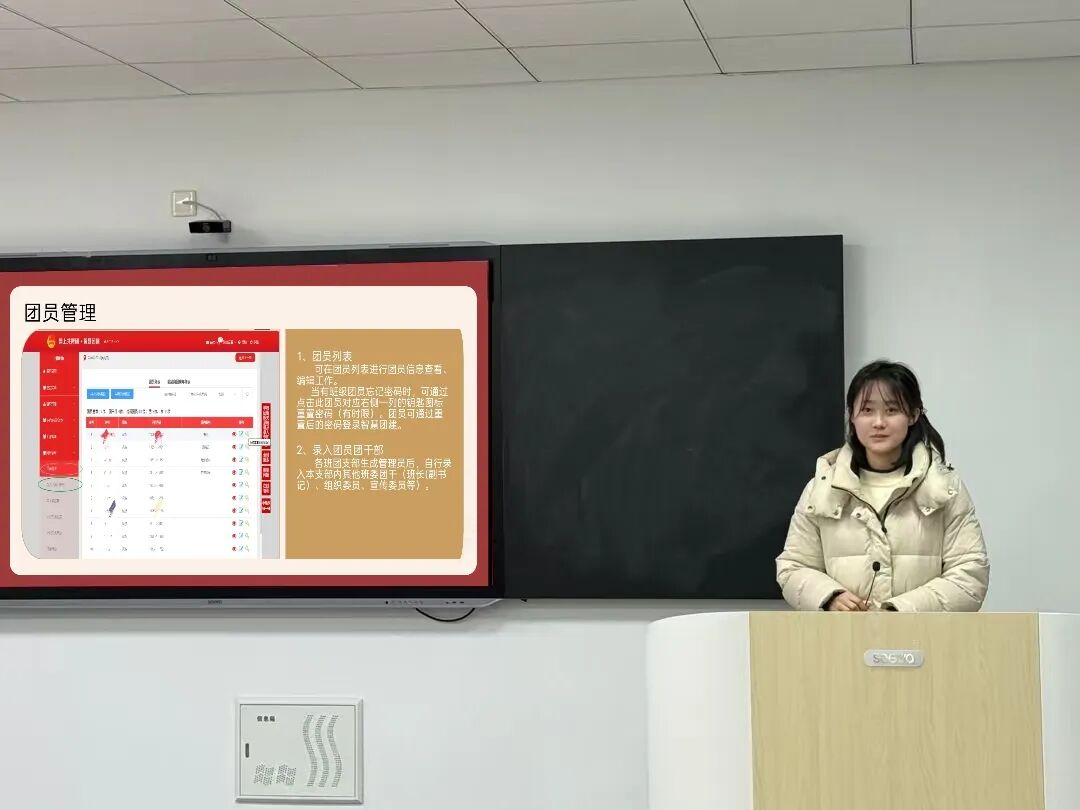 培训围绕四大核心板块系统展开:详细拆解团员组织关系转接全流程,明确操作节点与责任分工;规范专题教育活动录入标准,讲解信息填报要点与格式要求;解读班级团干部管理办法,明晰岗位职责与工作边界;梳理常见问题与注意事项,通过案例分析提供高效解决方案。会上重点强调三大核心要求:团员关系转接需牢记“新生精准核、毕业提前办”,确保组织关系无缝衔接;专题教育录入需遵循“活动必录、内容必全、时效必守”,确保学习痕迹完整可溯;团干部管理需做到“任命有依据、撤职有说明、变更有记录”,推动团干部队伍规范化建设。