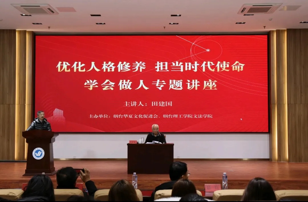 为深入贯彻立德树人根本任务,引导学生锤炼高尚品格、夯实道德根基,12月12日,文法学院于综合楼六楼报告厅成功举办人格修养专题讲座。烟台理工学院副校长、文法学院院长苏春景,烟台华夏文化促进会副会长兼秘书长宋义锋,中国网山东执行主任、烟台华夏文化促进会副秘书长刘丹,文法学院党总支书记曹钊庆、团总支副书记纪俞舟、学院老师和学生代表齐聚现场,共同聆听特邀嘉宾田建国老师的专题授课。